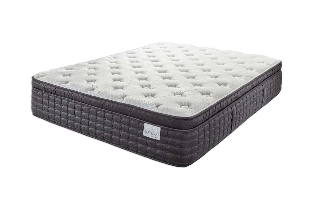 The Natural Elegance Bretton Eurotop offers plush cushioning and dependable support with a cooling Repreve cover and Ultra Fresh antimicrobial fibers for a cleaner sleep surface. Multiple layers of gel-infused foams provide pressure relief and contouring comfort, while the 1130 perimeter-zoned pocketed coil system delivers individualized support and strong edge durability. A sturdy fiber base pad and Nordic wood foundation ensure lasting stability for consistently restorative sleep.