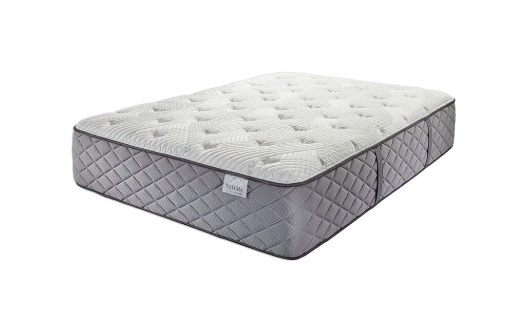 The Natural Elegance Caldwell Plush offers soft, contouring comfort with a cooling Repreve cover and Ultra Fresh antimicrobial safeguard fibers for a cleaner sleep surface. Gel-infused convoluted foam, plush quilt foam, and layers of plush, graphite-infused, and soft comfort foams provide pressure relief and luxurious cushioning. The 1130 perimeter-zoned pocketed coil system ensures responsive support and strong edge durability, reinforced by a base foam layer and Nordic wood foundation. At 14.5" high, adjustable-base friendly, and backed by a 10-year warranty, it delivers lasting plush comfort night after night.